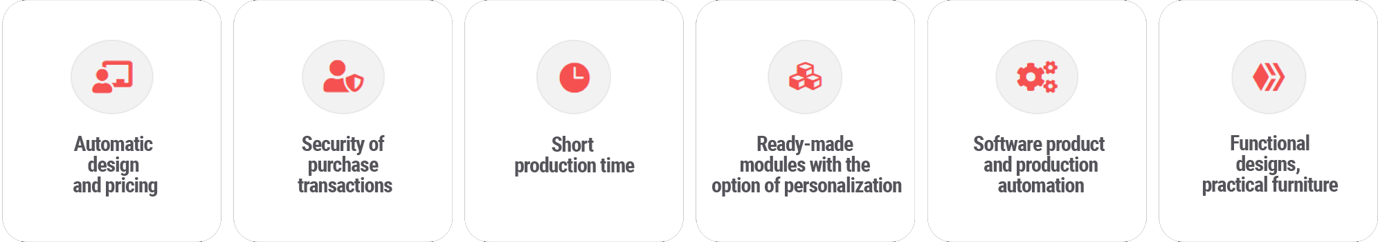 W Komandor Smart masz możliwość parametryzacji mebla, z dokłądnością do 1 mm, zarówno pod względem szerokości, wysokości jak i głębokości. Gotowa biblioteka rozwiązań pozwala tworzyć nieskończenie wiele różnych projektów. Od szaf z drzwiami przesuwnymi po uchylne, narożne, czy garderoby w kształcie U. Dodatkowo, oprócz gotowych i sprawdzonych konstrukcji korpusów, Komandor Smart proponuje ponad 180 przetestowanych rozwiązań wnętrza mebla, które są w stanie zaspokoić oczekiwania rynku w ponad 90%. Poprzez dobrze oprogramowany produkt, każdy stworzony mebel generowany jest w sposób poprawny konstrukcyjnie wraz z pełną dokumentacją projektową, prawną oraz instrukcją montażu. Komandor Smart to standaryzacja rozwiązań meblowych, dzięki której korpusy i wnętrza są łatwe w montażu oraz nie wymagają doświadczonych ekip monterskich, a sposób montażu zawsze pozostaje taki sam, niezależnie od użytych rozwiązań.